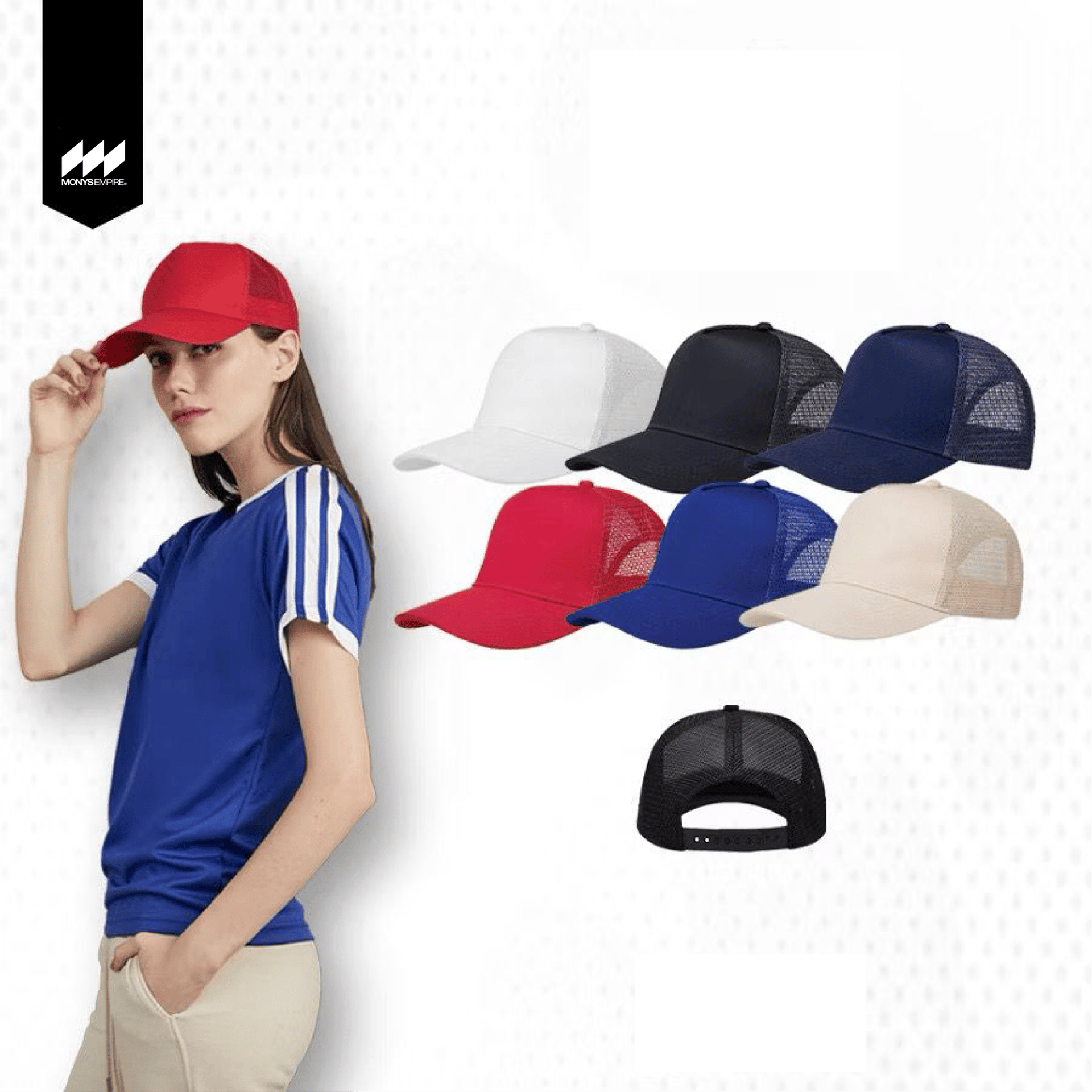 Topi klasik dengan bahagian belakang mesh (jaring) yang bagi airflow lebih baik.